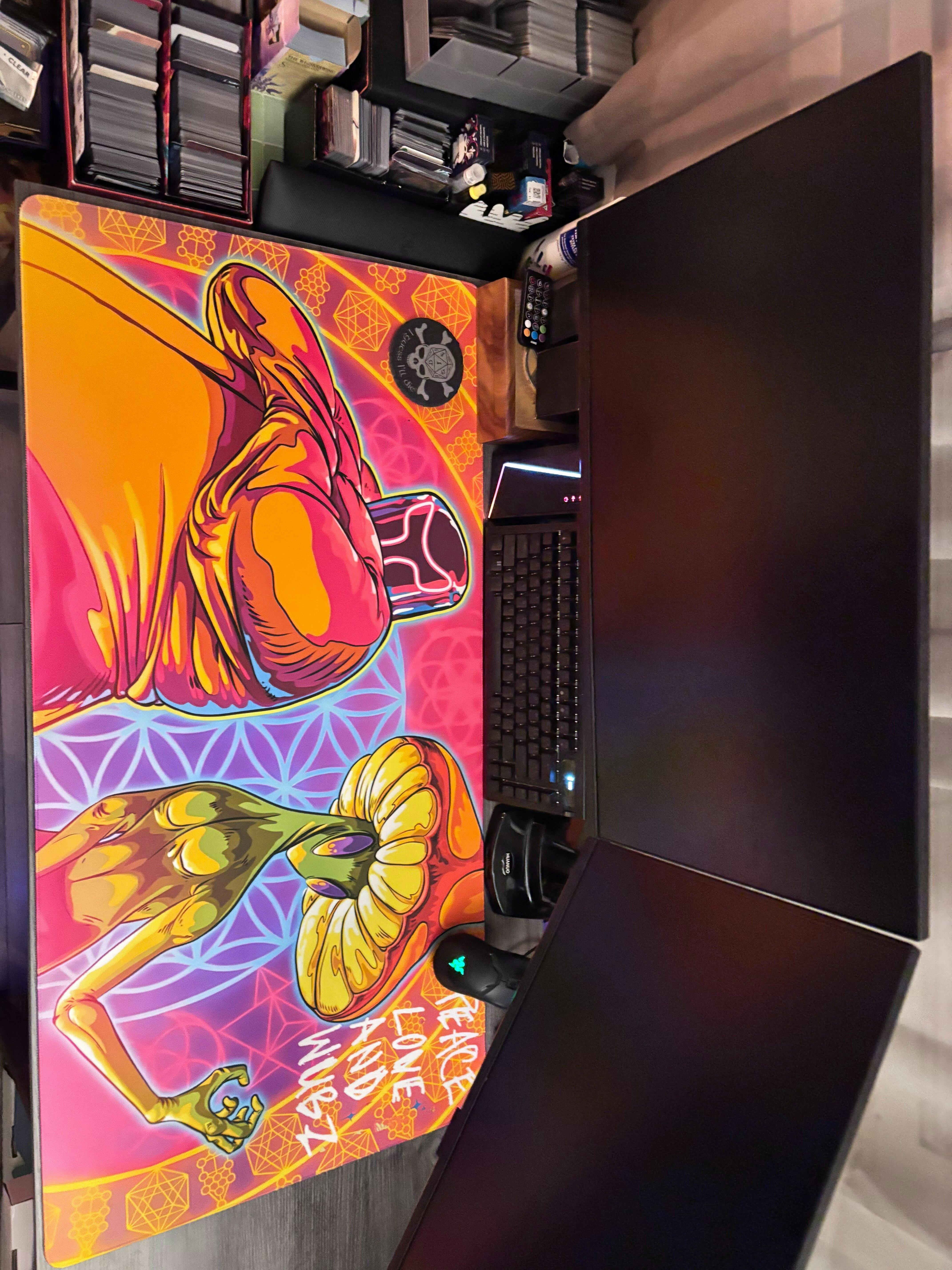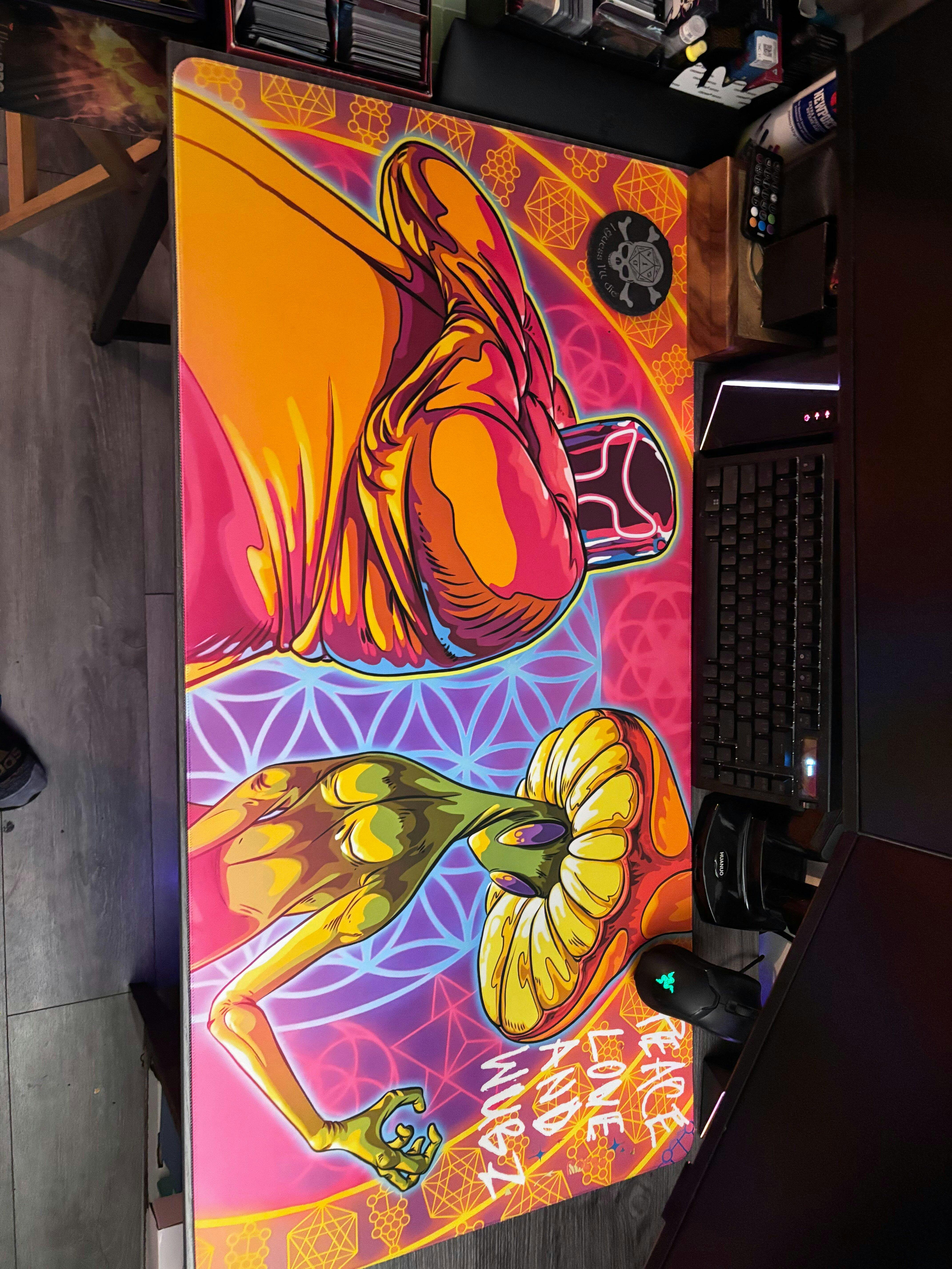 you guys exceeded my expectations. Both of the mats look very well done obviously the big one is for the computer as you can see here and the little one I’m gonna use for card nites, i’m kind of glad that the company I used before screwed its customers over because I got led your way The desk mat alone is very vibrant and colorful. Just like the picture you guys did a really good job both in customer service, quality of the product, and the shipping process. I will definitely be using you guys for now on hands down. I’m still shocked at how well this came out. (5stars isnt enough btw hands down 10/10 all the way)_